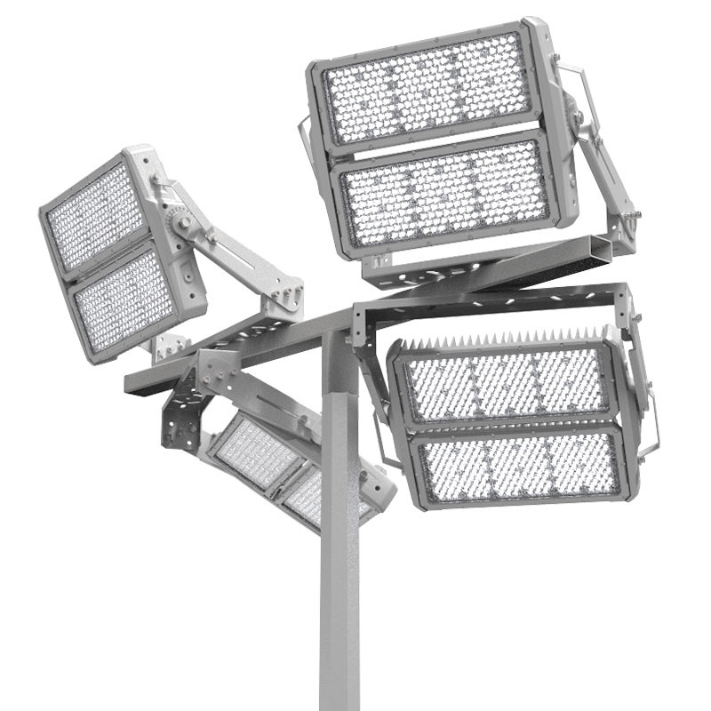 โคมสปอร์ตไลต์ LED เป็นไฟสปอร์ตไลท์สเตเดียมแบบสองโมดูลที่ออกแบบมาสำหรับสนามกีฬากลางแจ้ง